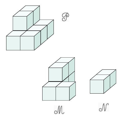 Nam tháo rời một hình P gồm 8 hình lập phương nhỏ thành hai hình M và N.