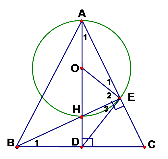 Bài 2. Cho tam giác cân ABC (AB = AC), các đường cao AD, BE, cắt nhau tại H. Gọi O là tâm đường tròn ngoại tiếp tam giác AHE.