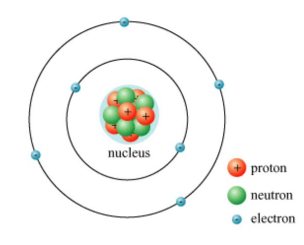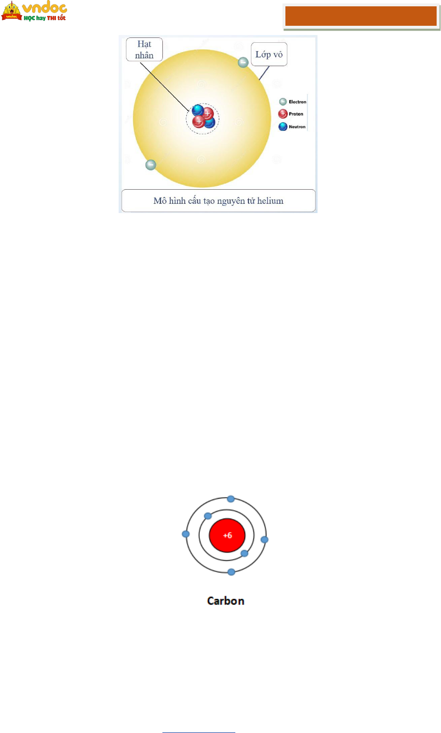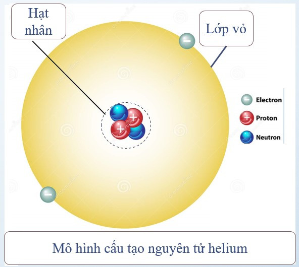 Ví dụ: Nguyên tử helium gồm hạt nhân có 2 proton, 2 neutron và vỏ nguyên tử có 2 electron.