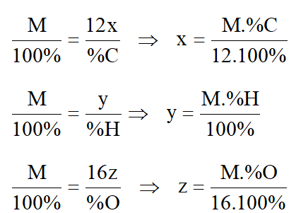 Xét sơ đồ: CxHyOz → xC + yH + zO