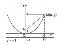 \(y=\frac{1}{4}x^2\), điểm A(0;1) và đường thẳng có phương trình y= -1. Gọi M là một điểm bất kì thuộc parabol. Chứng minh rằng MA bằng khoảng cách MH từ điểm M đến đường thẳng d.