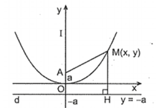 Ví dụ 2: Cho điểm A(0;a), gọi d là đường thẳng có phương trình y= -a. Chứng minh rằng quỹ tích của điểm M(x;y) sao cho khoảng cách MH từ M tới d bằng là một parabol.