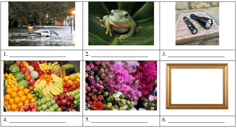Exercise 1: Look at the photos and write down the correct w ords starting with /fl/ or /fr/.