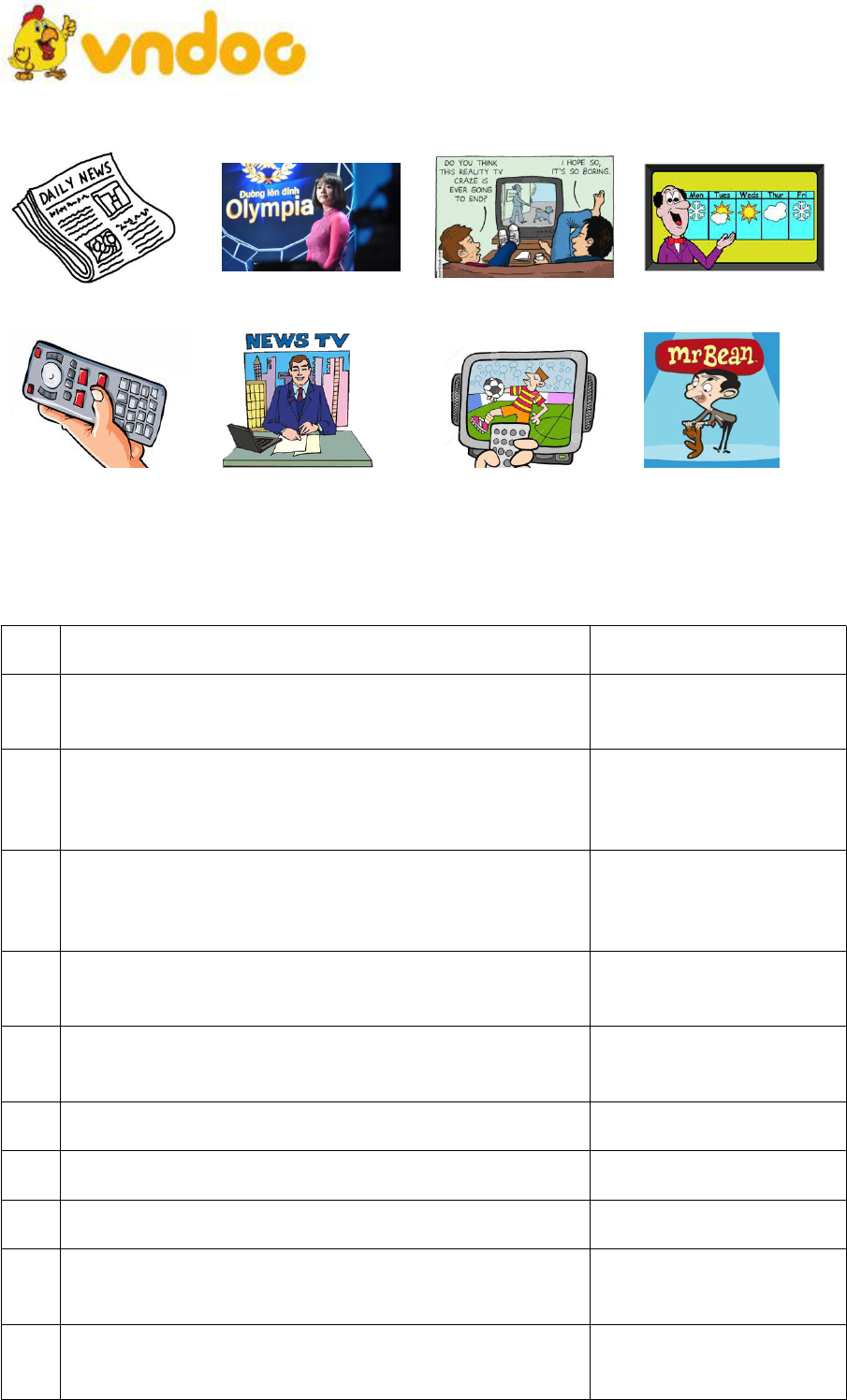Bài tập Tiếng Anh lớp 6 chương trình mới Unit 7: Television (số 4)