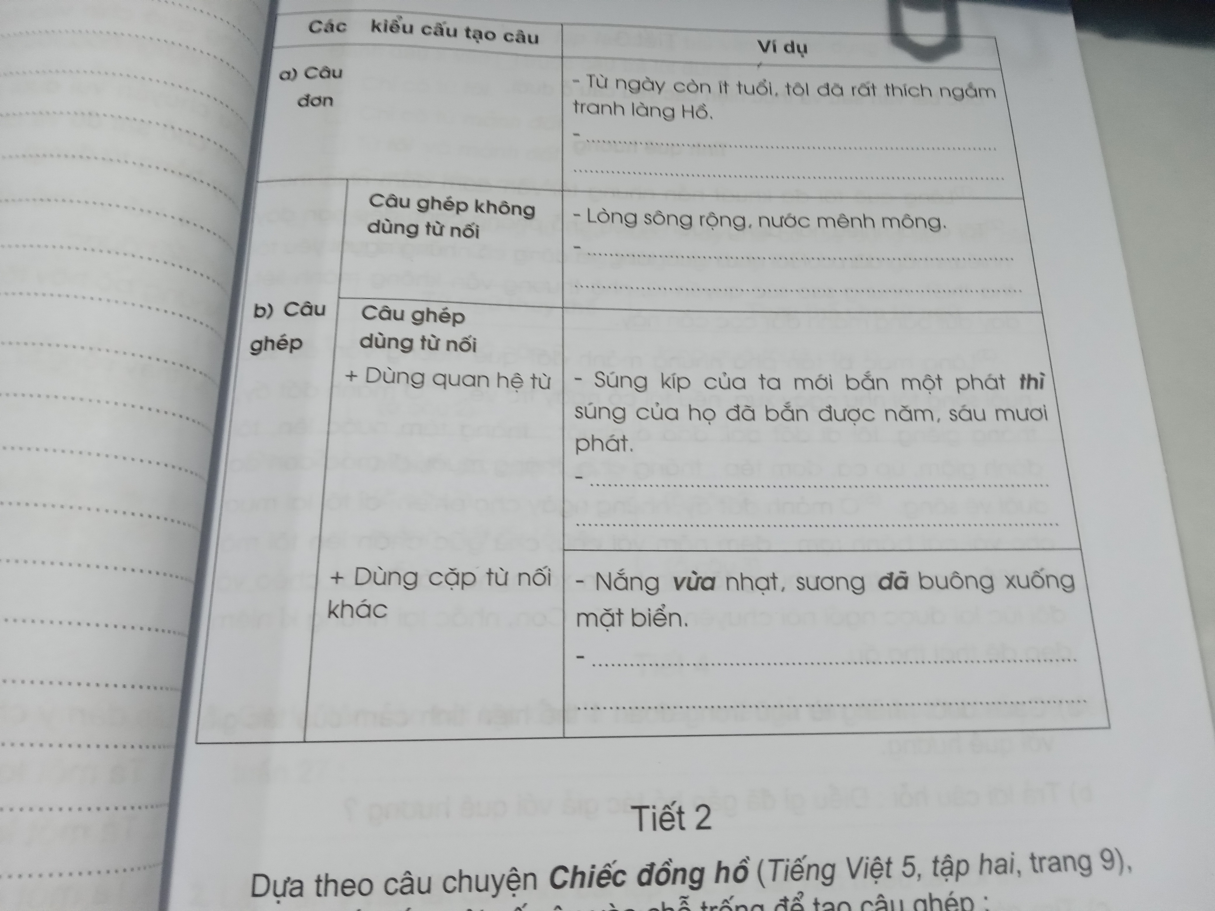 Tìm ví dụ các kiểu câu: Câu đơn, câu ghép