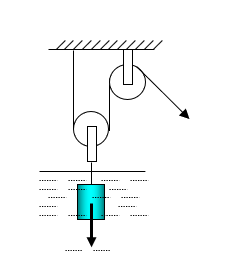 Bài tập 3: Người ta dùng hệ thống ròng rọc để trục một vật cổ bằng đồng có trọng lượng P = 5340N từ đáy hồ sâu H = 10m lên (hình vẽ).