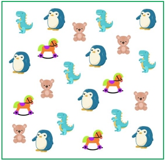 Vậy số con ngựa gỗ ít nhất, số con chim cánh cụt nhiều nhất; Số con gấu bông ít hơn số con khủng long