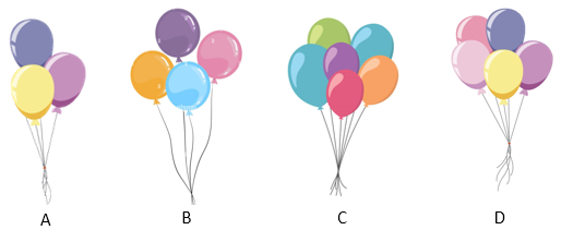 - Hình B có 4 quả bóng bay.