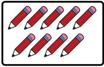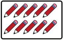 Hình bên trái có 10 chiếc bút chì