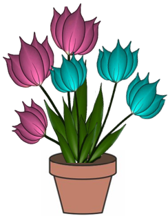 Trong hình có: 3 bông hoa màu tím và 3 bông hoa màu xanh