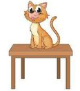 Con mèo ngồi ở trên||dưới chiếc bàn