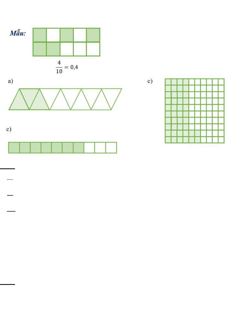 Câu 1: Quan sát hình vẽ, viết phân số thập phân và số thập phân tương ứng (theo