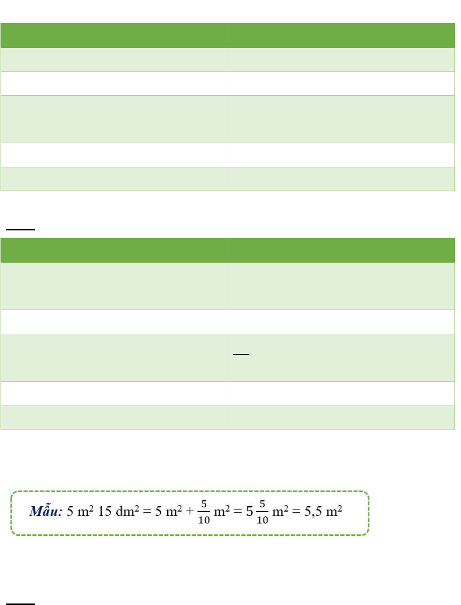 Câu 2: Viết các số đo dưới dạng bằng mét vuông (theo mẫu):