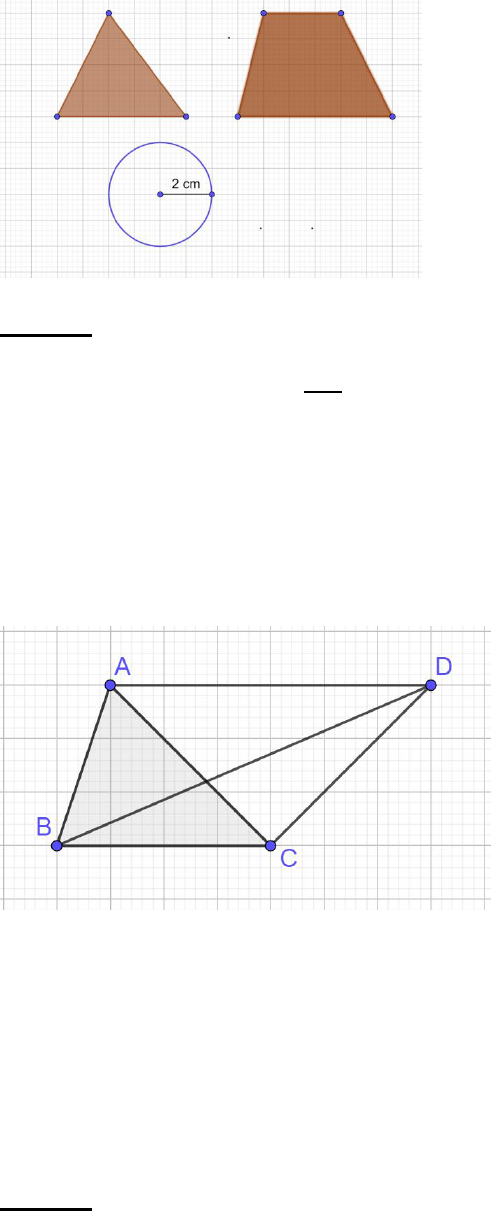 Câu 3: Tính diện tích các hình tam giác, hình thang, hình tròn trong hình vẽ sau biết