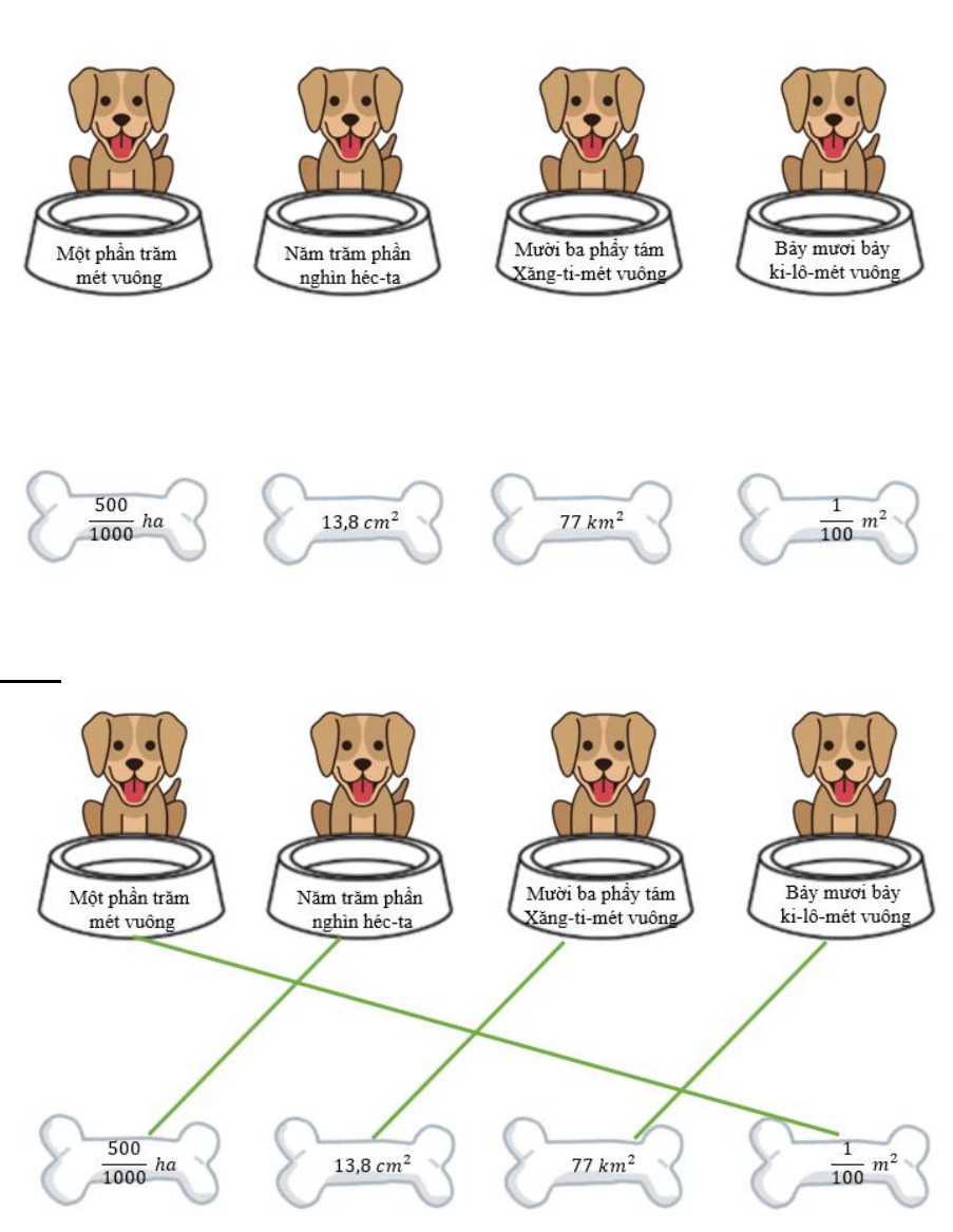 Câu 5: Chọn số đo diện tích phù hợp với cách đọc tương ứng: