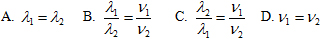 Câu 23: Một sóng cơ khi truyền trong môi trường 1 có bước sóng và vận tốc là l1 và v1. Khi truyền trong môi trường 2 có bước sóng và vận tốc là λ2 và v2. Biểu thức nào sau đây là đúng:![]()
