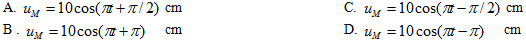 Câu 24: Đầu A của một sợi dây căng ngang dao động theo phương vuông góc với biên độ 10cm, chu kỳ 2s. Sau 4s sóng truyền được 16m dọc theo dây. Gốc thời gian là lúc A bắt đầu dao động từ vị trí cân bằng theo chiều dương. Phương trình dao động của điểm M cách A 2m là:![]()