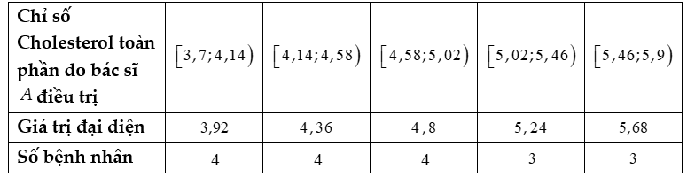 Ta có bảng giá trị đại diện của nhóm: