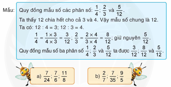 Câu 2. Quy đồng mẫu số các phân số sau (theo mẫu):