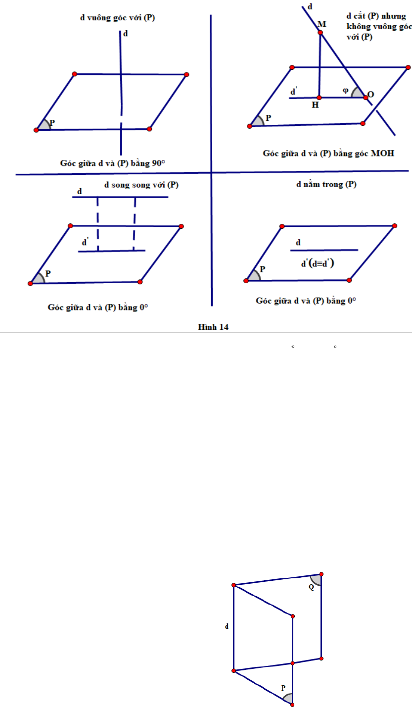 Nhận xét: Góc giữa đường thẳng và mặt phẳng có số đo từ