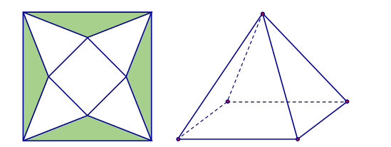 \(1\ (m)\)như hình vẽ dưới đây. Người ta cắt phần tô đậm của tấm nhôm rồi gập thành một hình chóp tứ giác đều có cạnh đáy bằng