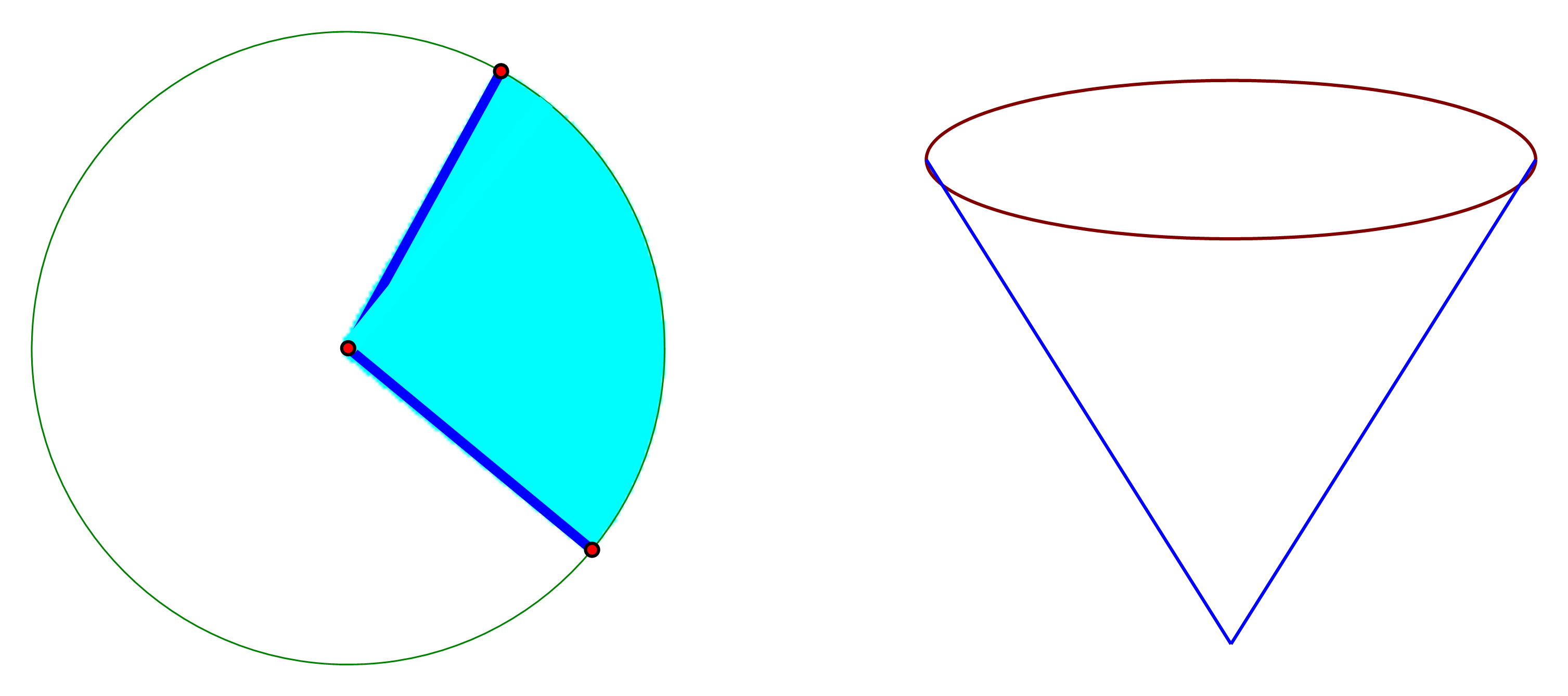 Bài tập 2. Với một miếng tôn hình tròn có bán kính bằng R = 6cm. Người ta muốn làm một cái phễu bằng cách cắt đi một hình quạt của hình tròn này và gấp phần còn lại thành hình nón (như hình vẽ).