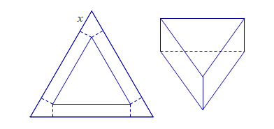 2x)^{2}\sqrt{3}}{4}.\frac{x}{\sqrt{3}} = \frac{a^{2}x - 4ax^{2} +