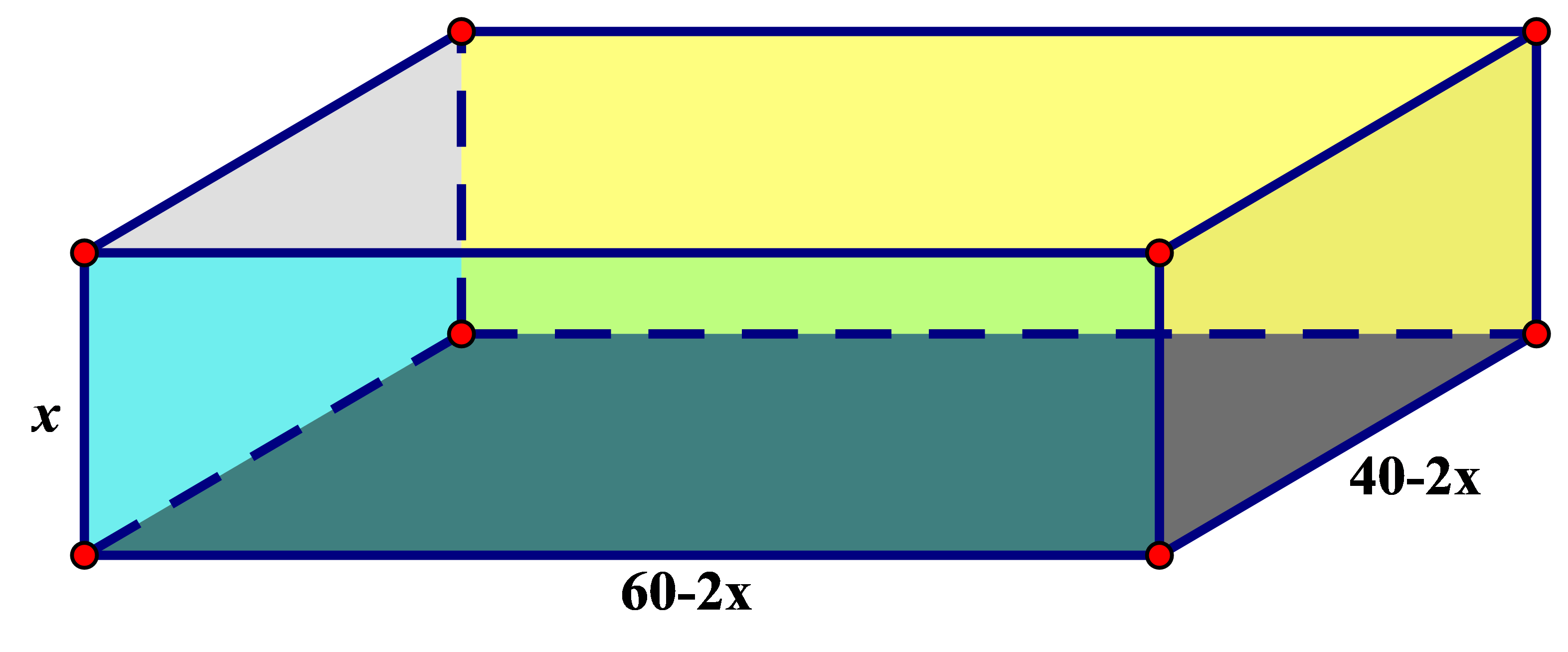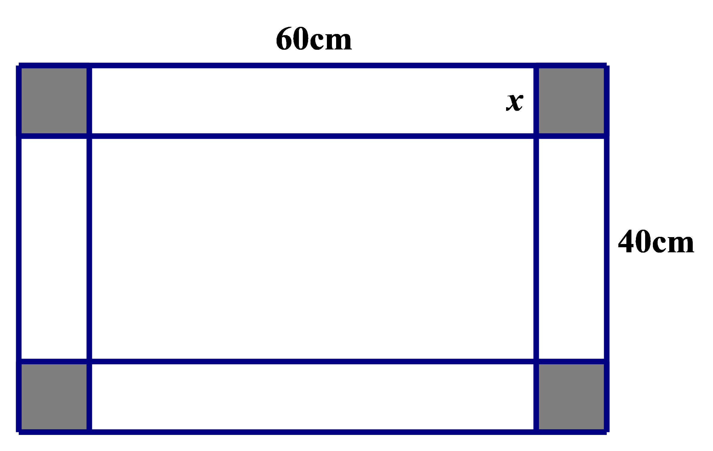 \(60\) cm người ta cắt bỏ bốn hình vuông ở bốn góc để gập lại được một cái hộp không nắp.