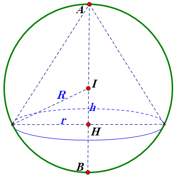 đường tròn đáy nằm trên mặt cầu đường kính