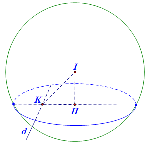 Gọi I là tâm mặt cầu, H là tâm đường tròn giao tuyến và là hình chiếu của I trên (P).