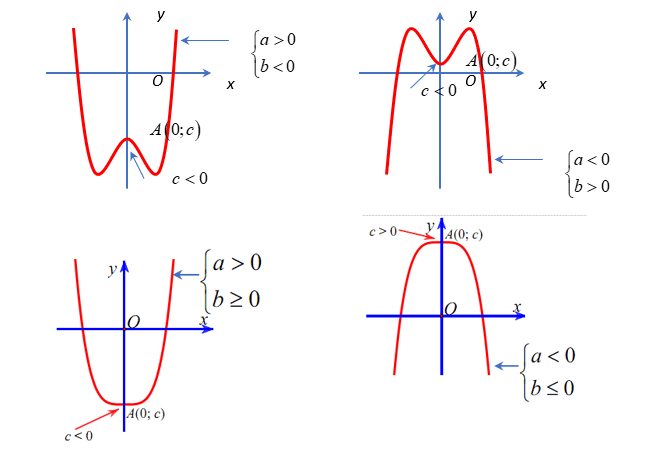 \(y = ax^{4} + bx^{2} + c\) dựa vào BBT, đồ thị.