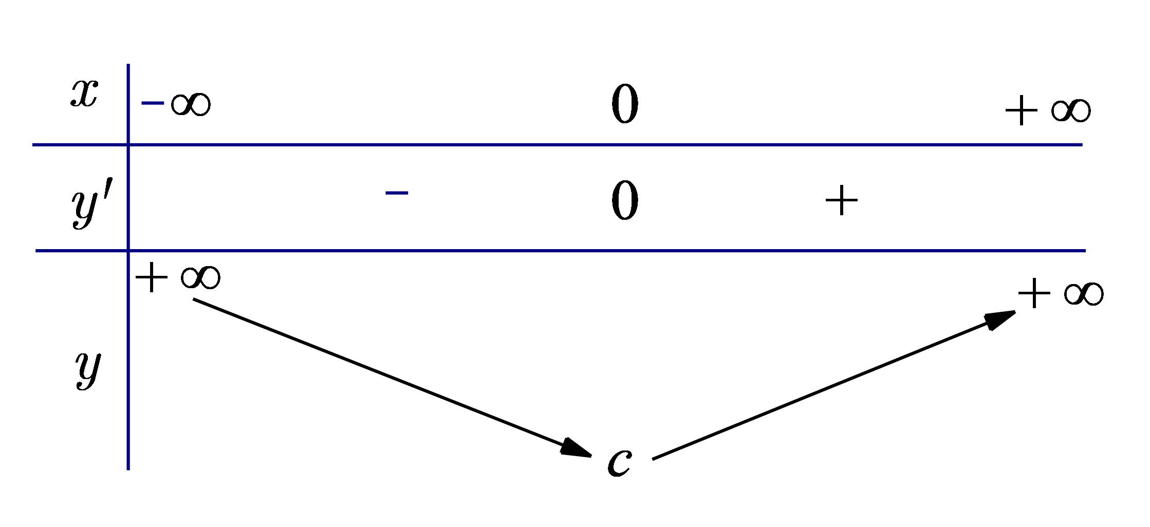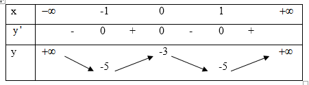 bx^{2} + c\) có bảng biến thiên như hình vẽ dưới đây: