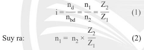 - Khi bánh dẫn 1 (có Z1 răng) quay với tốc độ n1 (vòng/phút), bánh dẫn 2 (có Z2 răng) quay với tốc độ n2 (vòng/phút)