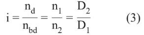 - Tỉ số truyền (i) được tính theo công thức (1)