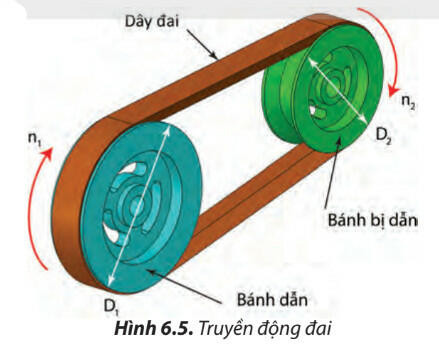 - Bộ truyền động đai sử dụng ma sát để truyền chuyển động và nới rộng khoảng cách giữa các trục (Hình 6.5)