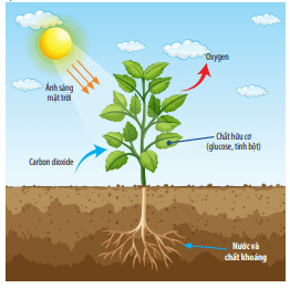 - Trong quá trình quang hợp ở thực vật đã xảy ra sự biến đổi hoá học. Quá trình quang hợp sử dụng năng lượng ánh sáng mặt trời đã được diệp lục hấp thụ để tổng hợp chất hữu cơ và giải phóng oxygen từ khí carbon dioxide và nước.