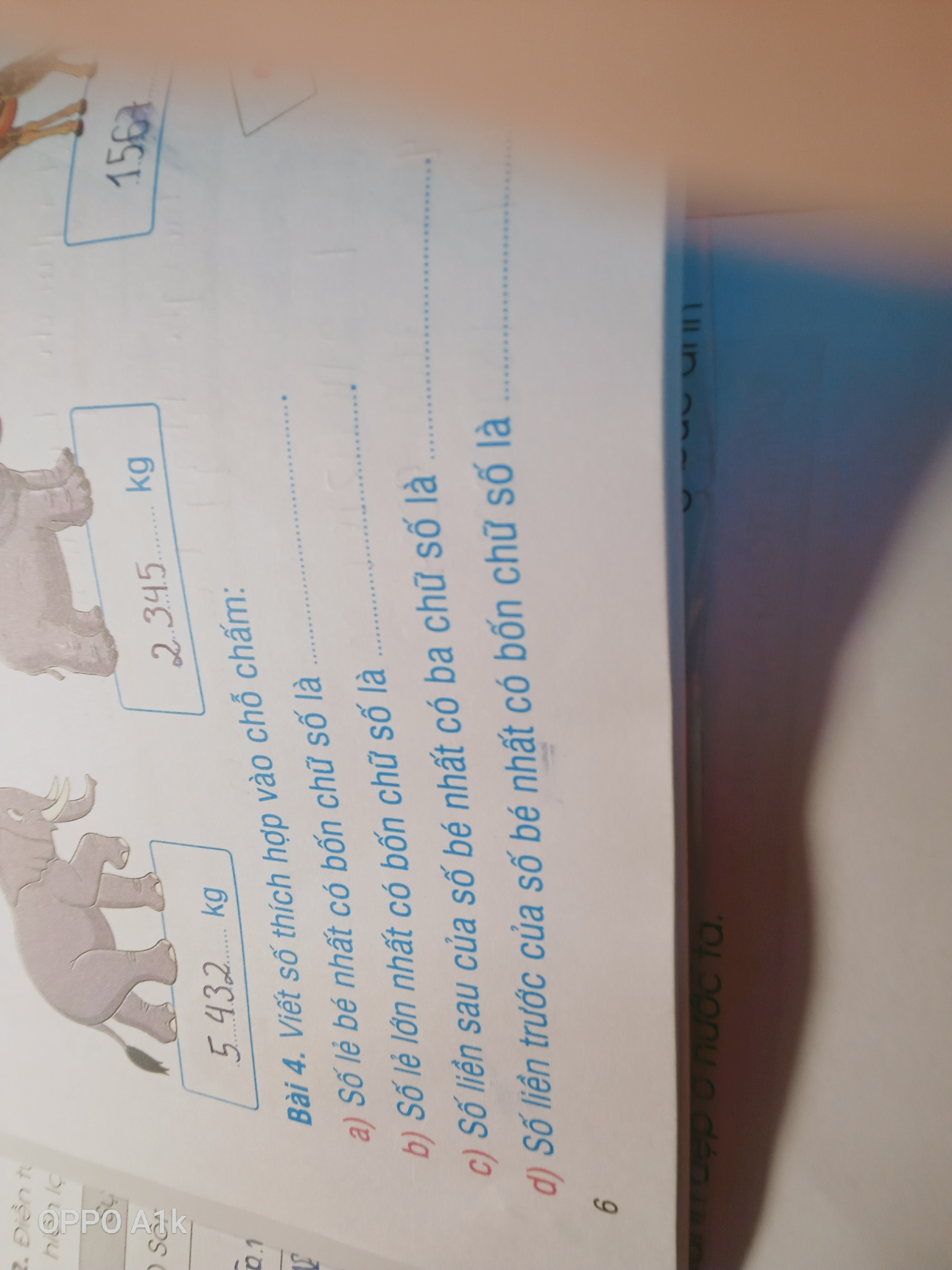 Viết số thích hợp vào chỗ trống: Số lẻ bé nhất có bốn chữ số là.....