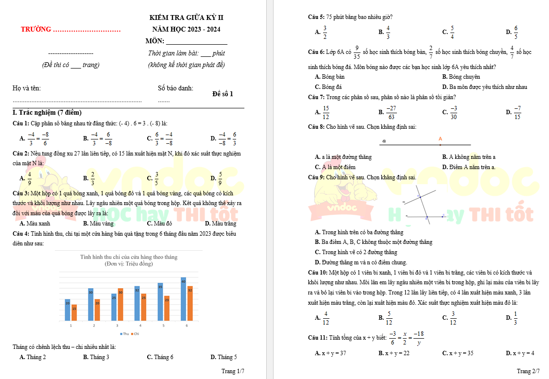 Bộ 5 đề thi giữa kì 2 lớp 6 môn Toán Cánh diều được VnDoc chia sẻ đến các quý thầy cô cùng các bạn học sinh, bộ đề thi gồm có 5 đề thi kèm theo đáp án chi tiết giúp các bạn luyện tập tại nhà, cũng là tài liệu ôn tập giữa kì 2 rất tốt giúp các bạn củng cố kiến thức Toán lớp 6, biết cách phân bổ thời gian thi hợp lý. Đồng thời cũng là tài liệu hay giúp quý thầy cô tham khảo chuẩn bị đề thi. Mời các quý thầy cô cùng các bạn tải về để tham khảo.