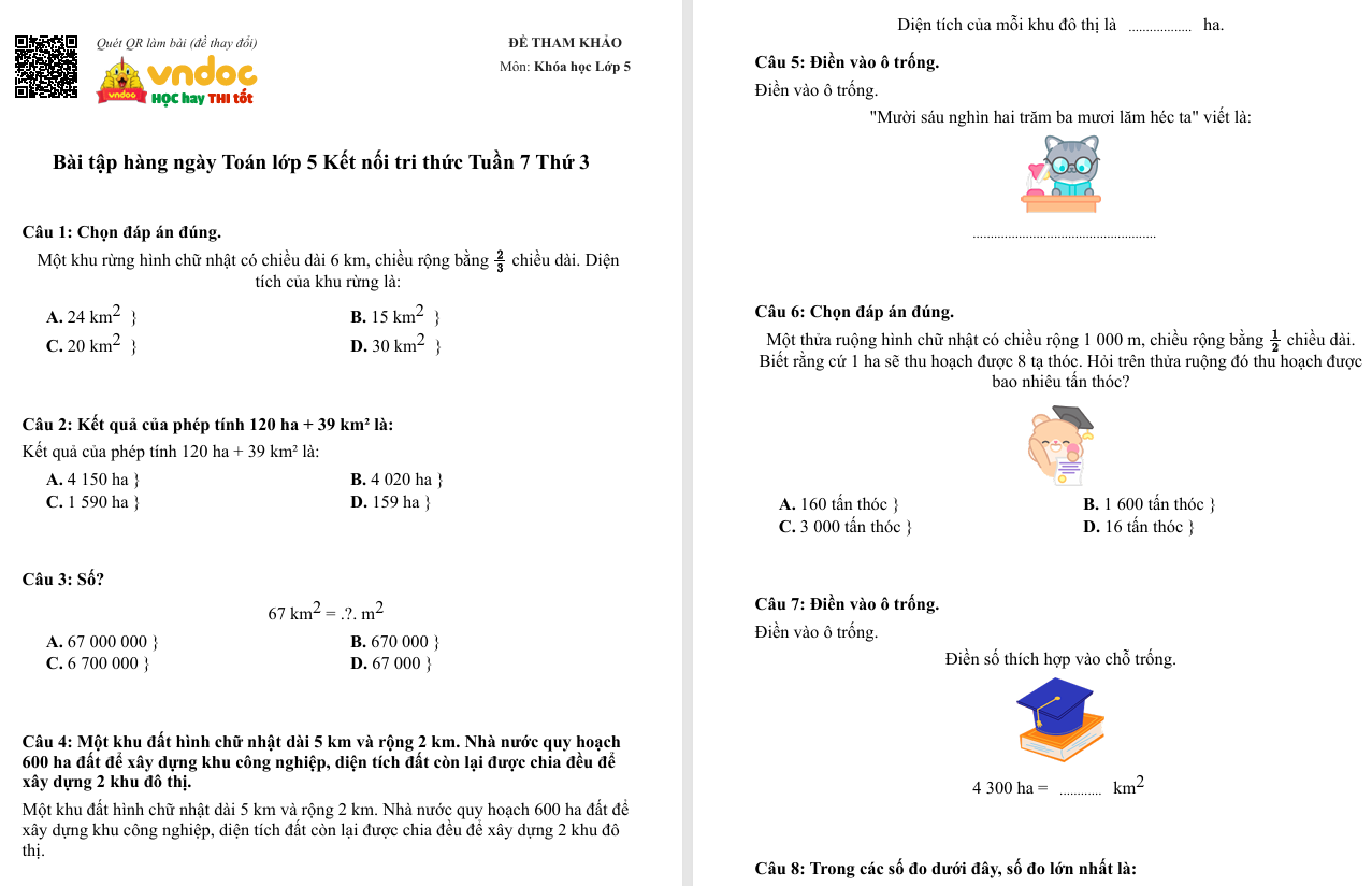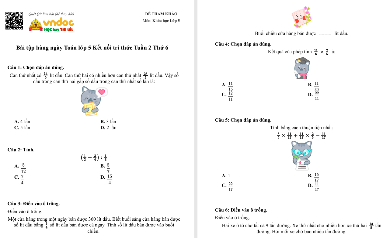 Bộ bài tập hàng ngày Toán lớp 5 Kết nối tri thức (Học kì 1)
