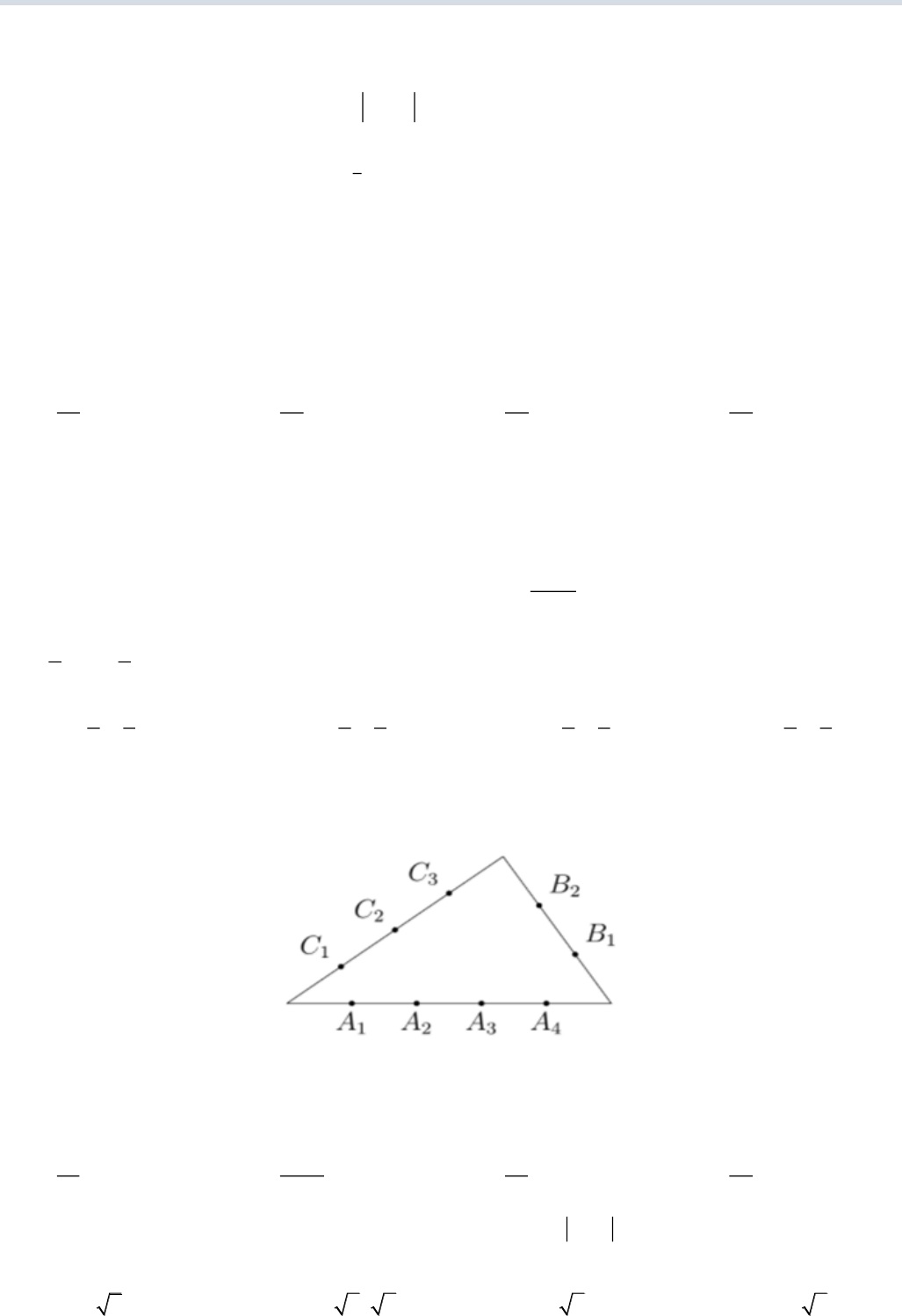 46: Cho một tam giác, trên ba cạnh của nó lấy 9 điểm như hình vẽ. Có tất cả bao nhiêu tam giác có ba