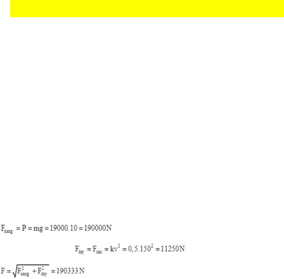 được tính theo biểu thức: F = k.v2 với k = 0,5. Hỏi lực từ tổng hợp tác dụng lên đầu tàu là bao