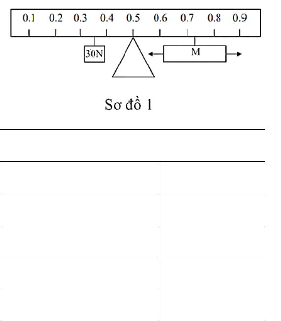 nặng đó sao cho thước đo thăng bằng. Kết quả của các lần thực hiện được ghi lại trong bảng 1.