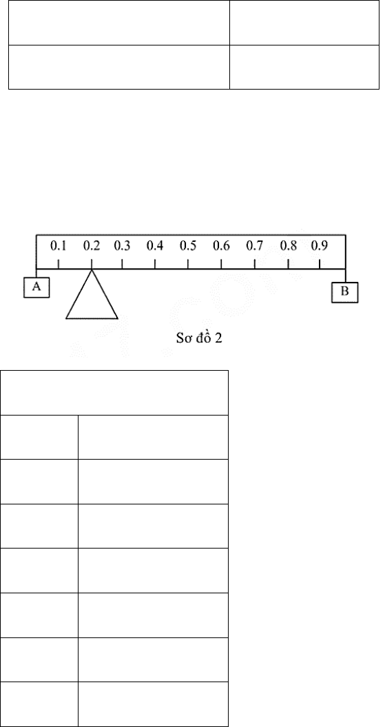 diễn trong Sơ đồ 2. Kết quả vị trí cân bằng của đòn bẩy qua các lần thí nghiệm được ghi lại trong