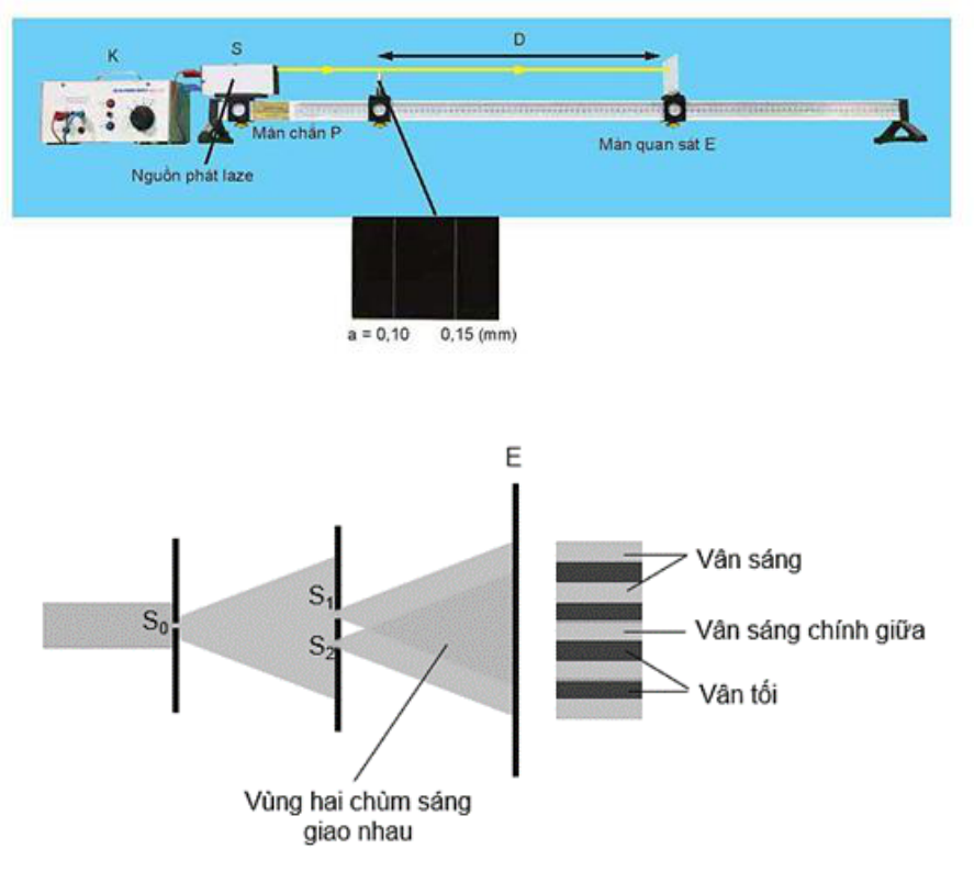 Thí nghiệm trên là thí nghiệm giao thoa ánh sáng của Young, sơ đồ rút gọn được thể hiện như