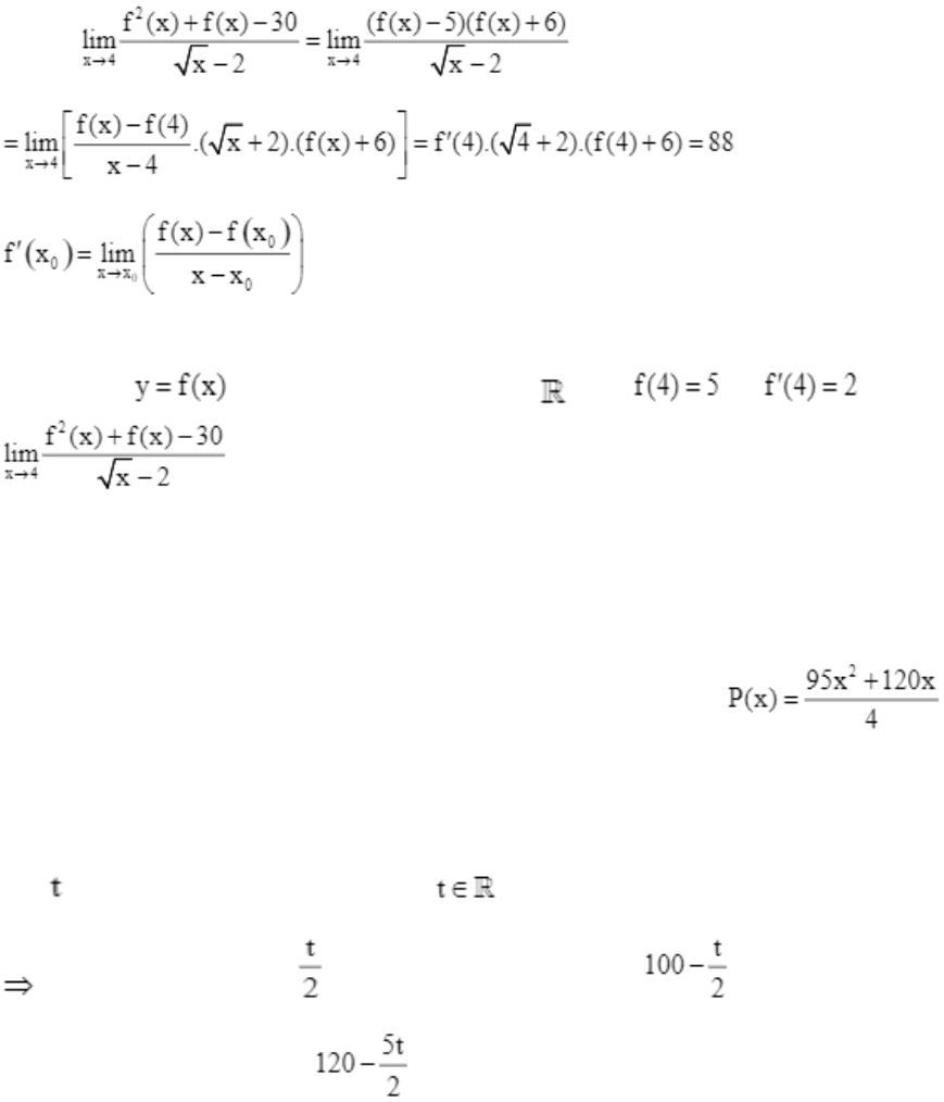 Cho hàm số xác định và có đạo hàm trên , biết và . Giới hạn bằng (1) _________.