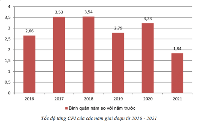 Câu 11. Quan sát biểu đồ dưới đây và cho biết: trong giai đoạn 2016 - 2021, ở Việt Nam tình trạng lạm phát ở mức độ như thế nào?