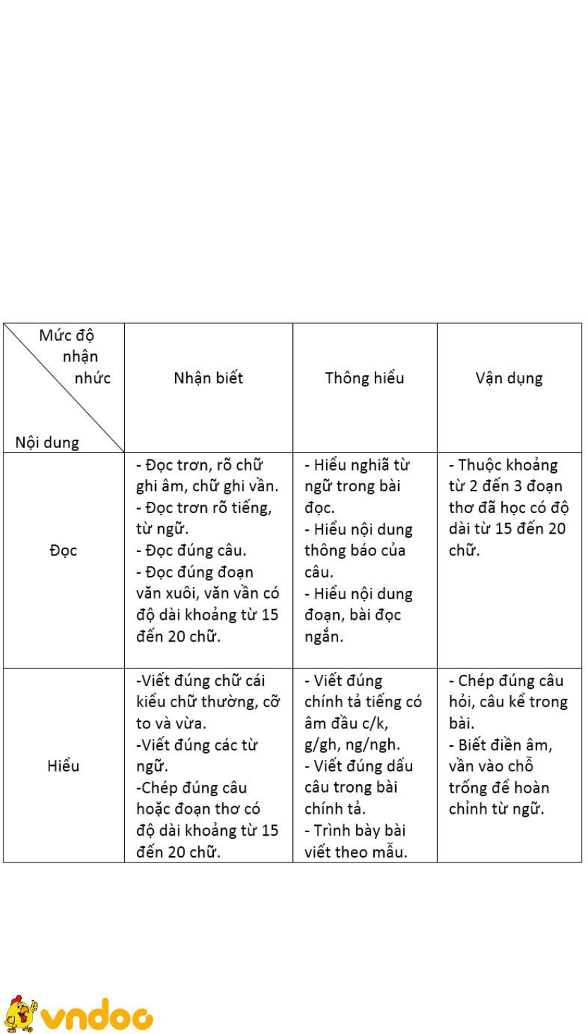 B. TIÊU CHÍ RA ĐỀ KIỂM TRA MÔN TIẾNG VIỆT LỚP 1 HK I