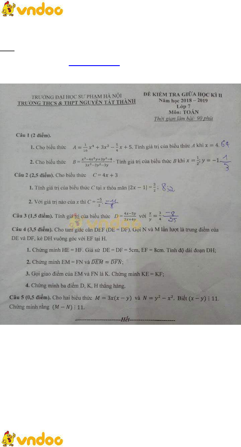 - Bộ đề thi giữa học kì 2 môn Toán lớp 7