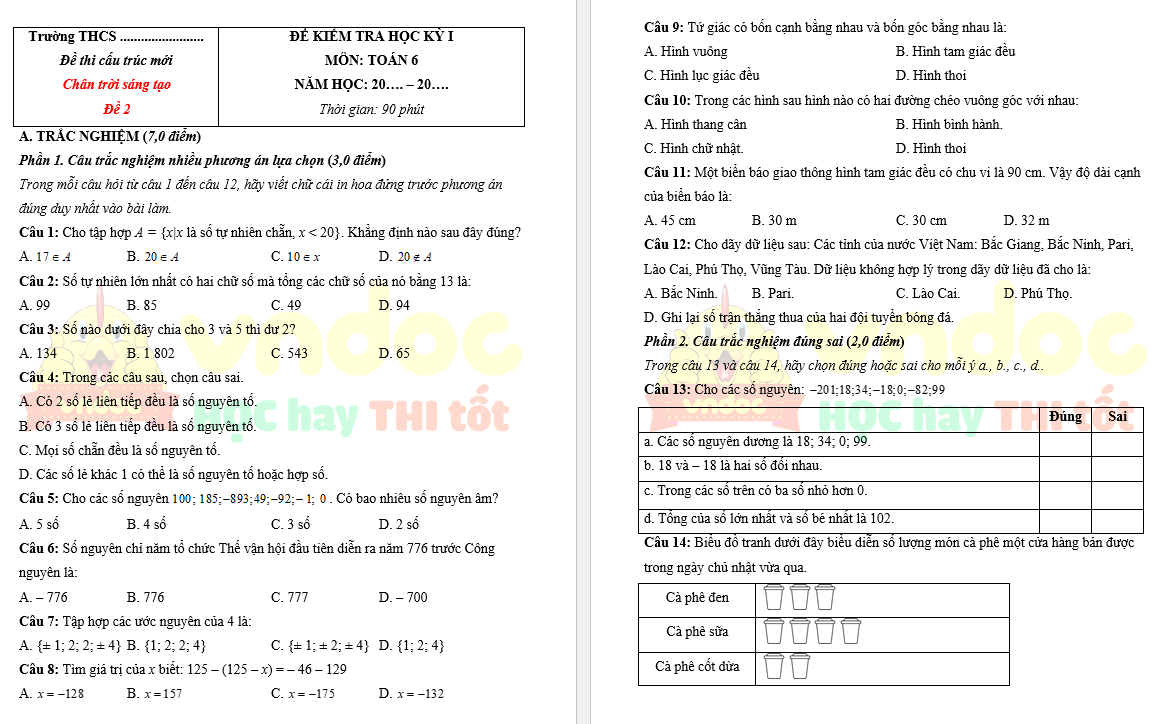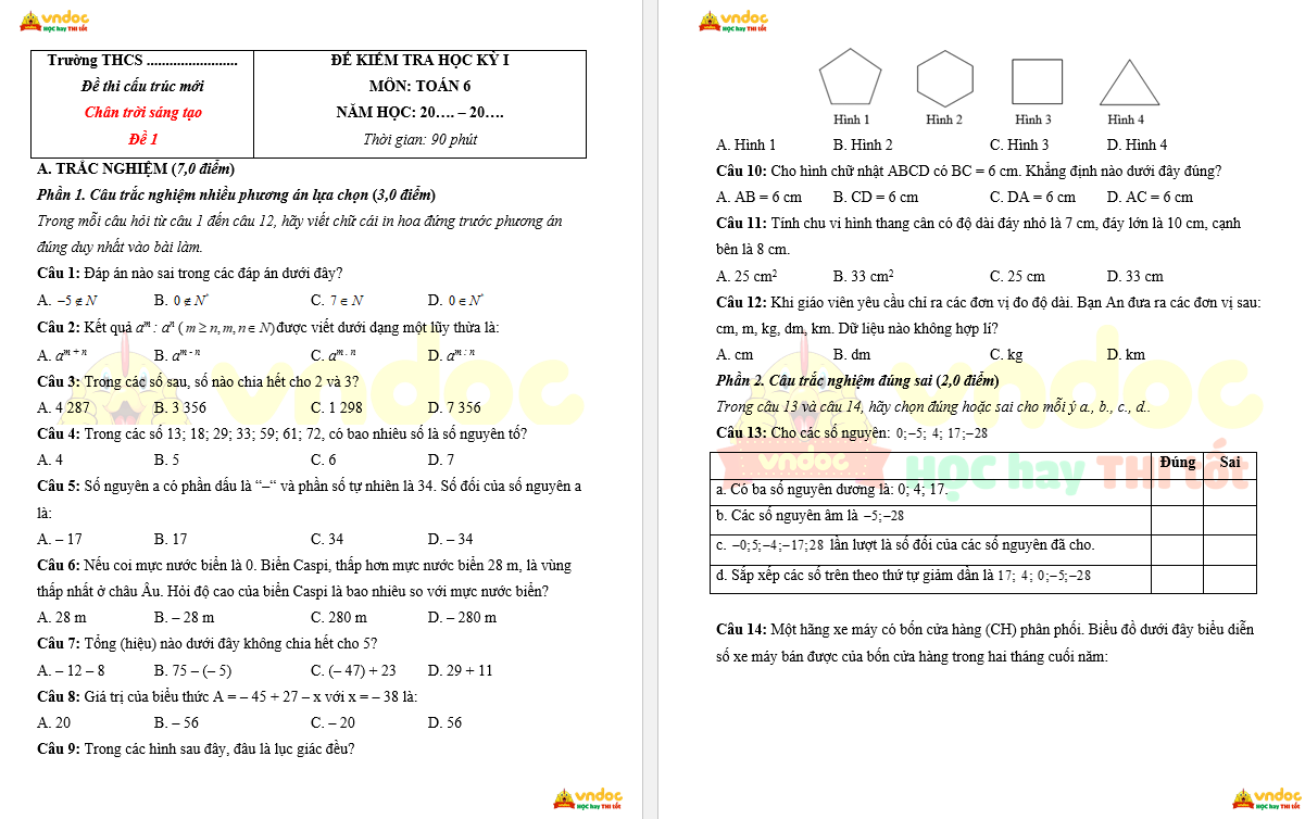 Bộ Đề thi học kì 1 Toán 6 Chân trời sáng tạo - Theo CV 7991