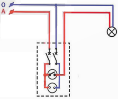 c) Mạch điện 1 công tắc 3 cực điều khiển 2 đèn được sử dụng trong mạch đèn hành lang |